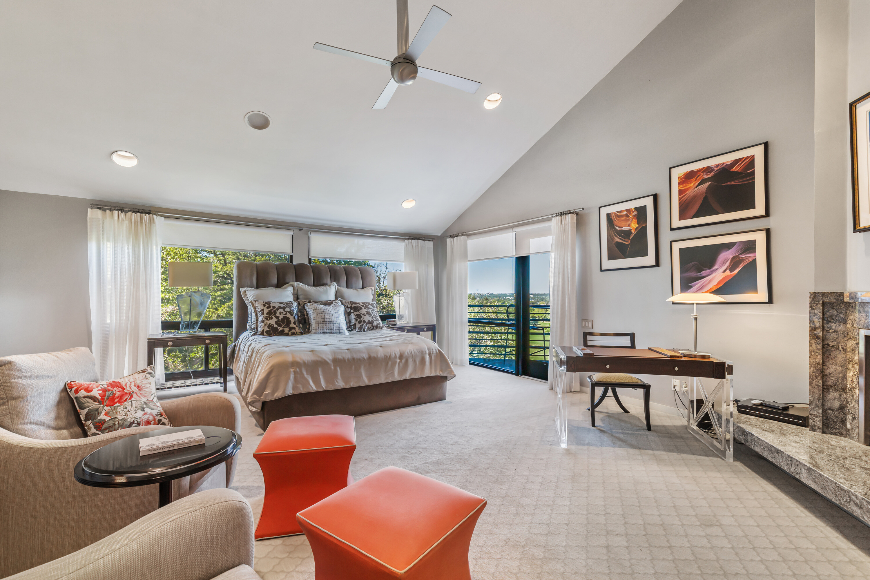 This estate's low-profile stone facade blends into the natural surroundings. Once you step inside you are transported into a light-filled sanctuary anchored by 20-foot windows with stunning views of the surrounding landscape. Every aspect of your Westover Hills estate pays respect to the magnificent views, from its orientation on the elevated property to the flow of the interior around two outdoor living areas. Wide open spaces lend beautifully to entertaining, from the sleek kitchen to the living room and formal dining, where guests can meander around the double-sided fireplace. A second living room and home office up the central floating staircase elevate function with more incredible views. Two private suites await your guests on the estate's lower level, giving friends and family the utmost privacy.