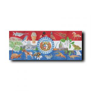 Aaron truly feels the best way to learn to paint is to do so along with your teacher or mentor on the same canvas. This method of collaboration inspired Aaron and Barb to create a beautifully historic masterpiece for their home state of Missouri. Their proudest accomplishment by far is their stunning creation of the Missouri Bicentennial Mural, now located in the Harry S. Truman State Office Building in Jefferson City inside Harry's Place cafeteria. Standing an impressive 12 feet high and 30 feet wide, the mural is composed of thousands of 2-inch triangles, each painted by a different person. Resembling a patchwork quilt or stained glass, the project took 3 years to complete from its inception in 2018, due to the Pandemic and the restrictions that were imposed. This amazing creation was a community effort by the people of Missouri who may have never met one another. Visitors to Missouri from 17 countries and 30 states are represented on the mural. Because this mural was created in celebration of Missouri's 200th birthday, everyone was welcome to participate: men, women, and children of any age, ability, or background. Everyone who wanted to paint did so. It was a free project to ensure everyone had the opportunity to be a part of this memorable experience and that families could all participate together. Aaron and Barb believe this mural is a priceless masterpiece, painted by 16,116 people who worked together to make something important, unique, and beautiful. They are hoping for recognition in the Guinness Book of World Records for the most people to paint a single piece of artwork.