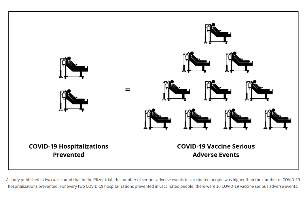Image 1: Two COVID-19 Hospitalizations Prevented = 10 COVID-19 Vaccine Serious Adverse Events