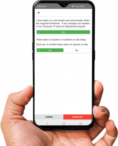 In addition, employees can be required to validate whether there were any safety incidents when clocking out, with the option to add any required details.