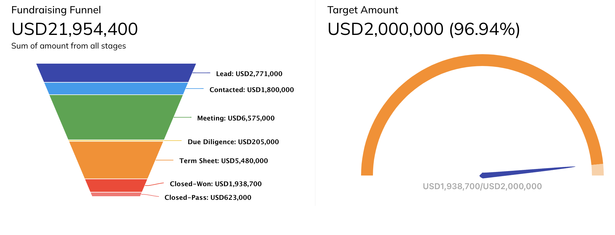The tool provides founders a dashboard that provides a snapshot of their fundraising funnel by stage (investor lead - contacted - meeting - due diligence - term sheet - won/pass) and a raise-o-meter to show progress towards the fundraise target. With the 8vdX CRM tool, founders can upload their investor leads (including their demo day leads) and generate a quick heat map based on the historical conversion rates and the average ticket size of the investors. The CRM can then send out pre-crafted emails with meeting requests with a calendar link and presentation to the selected investors, to significantly reduce time and effort by simplifying the tedious process of fundraising.