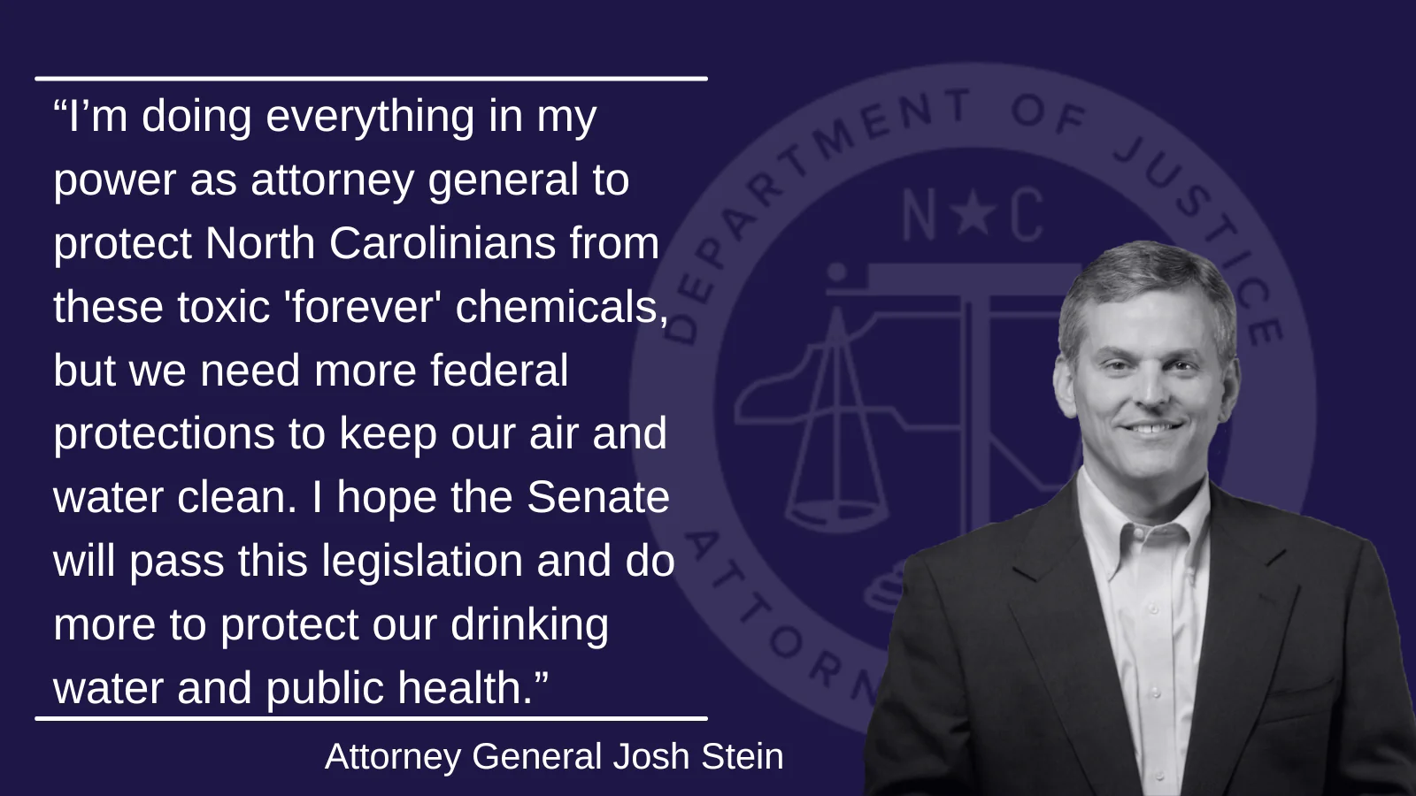 “I’m doing everything in my power as attorney general to protect North Carolinians from these toxic ‘forever’ chemicals, but we need more federal protections to keep our air and water clean,” said Attorney General Josh Stein. “I hope the Senate will pass this legislation and do more to protect our drinking water and public health.”