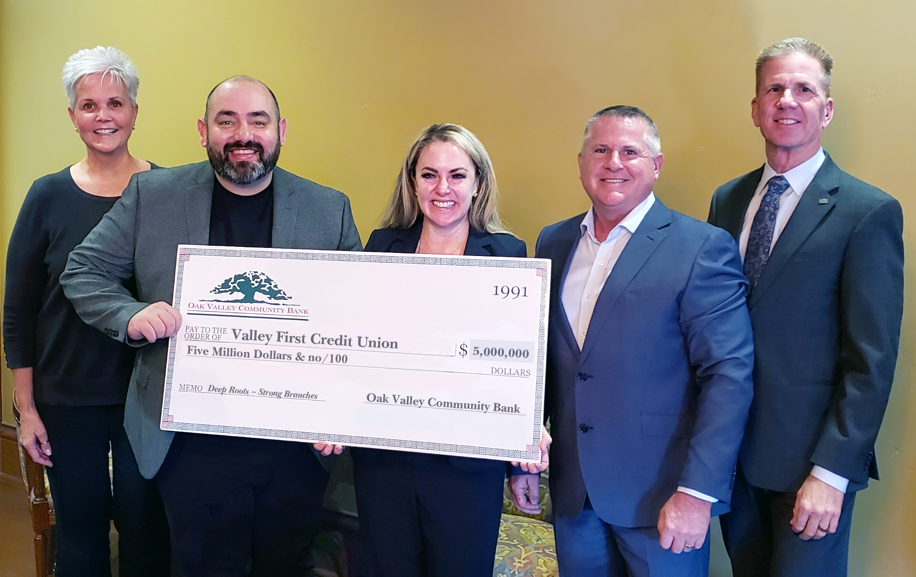 "We're grateful to Oak Valley Community Bank for taking a leadership role in our community to support the lending activity we're doing for low-income families throughout the Central Valley," said Valley First President and CEO Kathryn Davis. "We have a deep commitment to providing access to fair and affordable credit for housing, reliable transportation, small-dollar loans, and supporting our local small businesses. Oak Valley's support will provide us with the ability to continue making these loans."