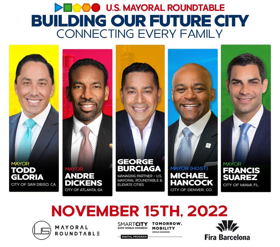 "As a first-level session bringing recognized leaders in the global community, we are convinced that the insights from major U.S. City Mayors like Denver, Miami, Atlanta, or San Diego will be essential to take the capacity of debate and exchange of our urban community to the next level. We feel excited and proud to count on the U.S. Mayoral Roundtable and its invaluable presence at this unmissable meeting point for urban leaders," said Ugo Valenti, Expo Executive of Smart City Expo World Congress.