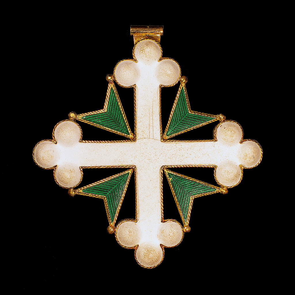 The jewelry from the S.S. Central America includes an extremely rare medal/badge presented by the Order of Saint Maurice and Saint Lazarus, the world’s second oldest order of knighthood. Bestowed by the House of Savoy in Italy, the medal is a white-enameled cross representing the Order of Saint Maurice and a green-enameled Maltese cross of the Order of Saint Lazarus. It was retrieved from the bottom of the ocean in 1991 and kept in secure storage for decades.