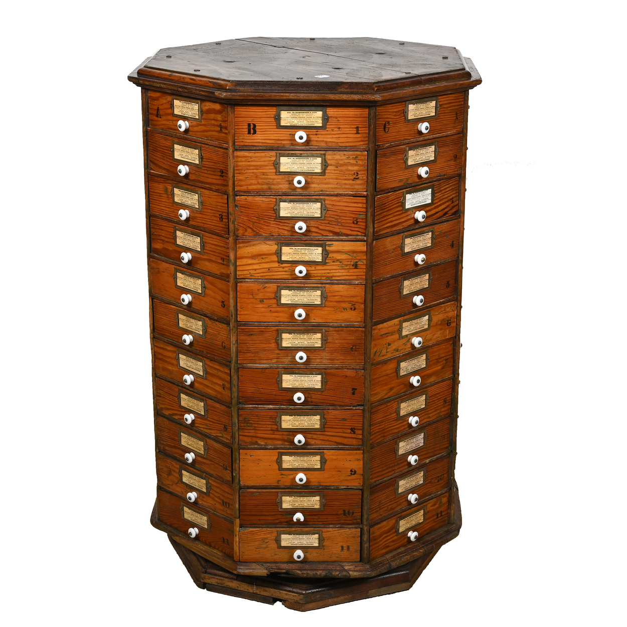 The most historically significant item in the sale is an eight-sided revolving hardware cabinet made from oak with 88 drawers and porcelain drawer pulls, with ties to General G. A. Custer.