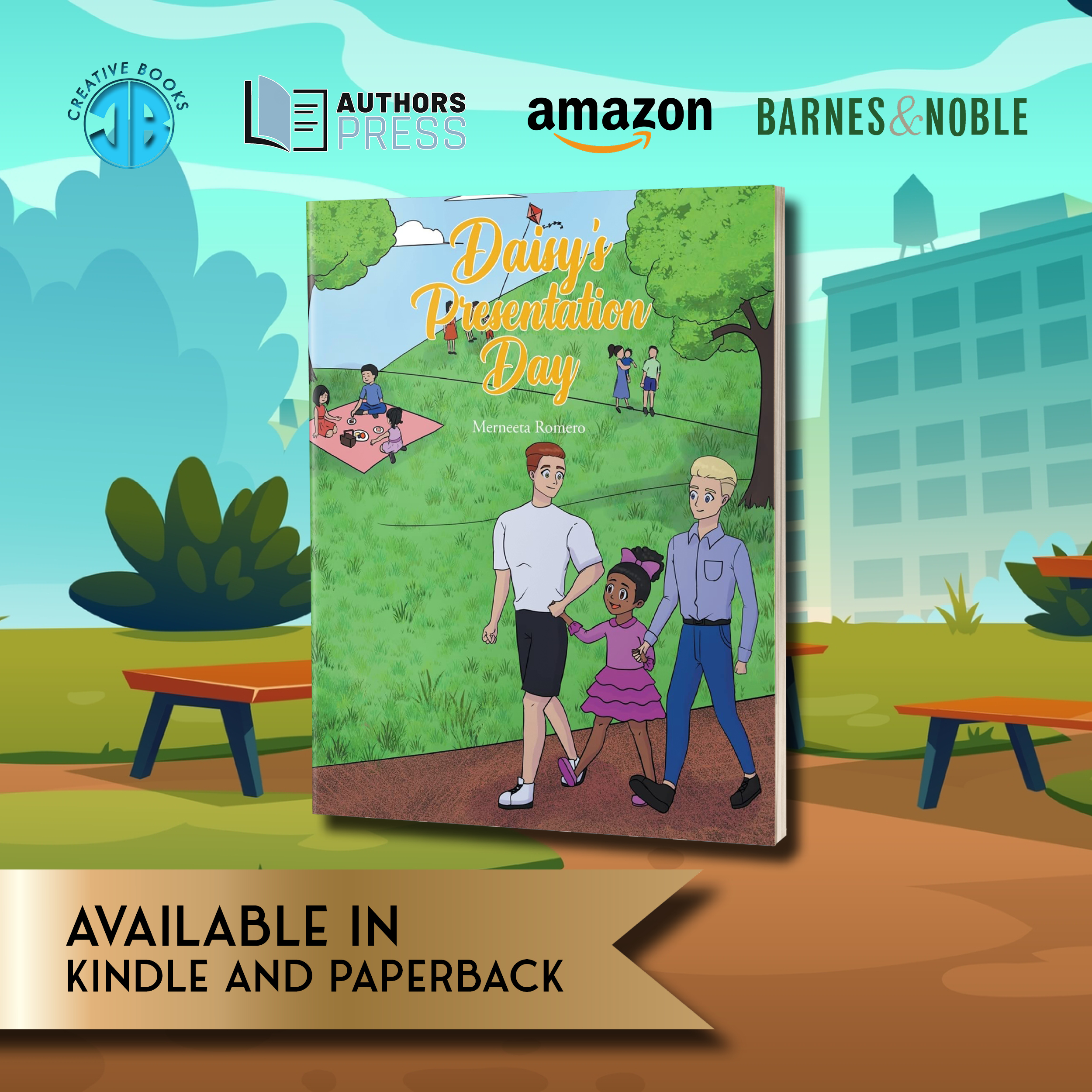Daisy is an eight-year-old African girl adopted by a Caucasian gay couple, David and Isiah. She is greatly adored by her parents and is nurtured in a loving home. She is looking forward to her school's presentation day because she will be able to introduce her amazing parents to her classmates, but her excitement was dashed when she was mocked for having parents of the same gender. Daisy's Presentation Day is a book about the struggles of a young child to understand the complexities of a family that does not conform to society’s standards.