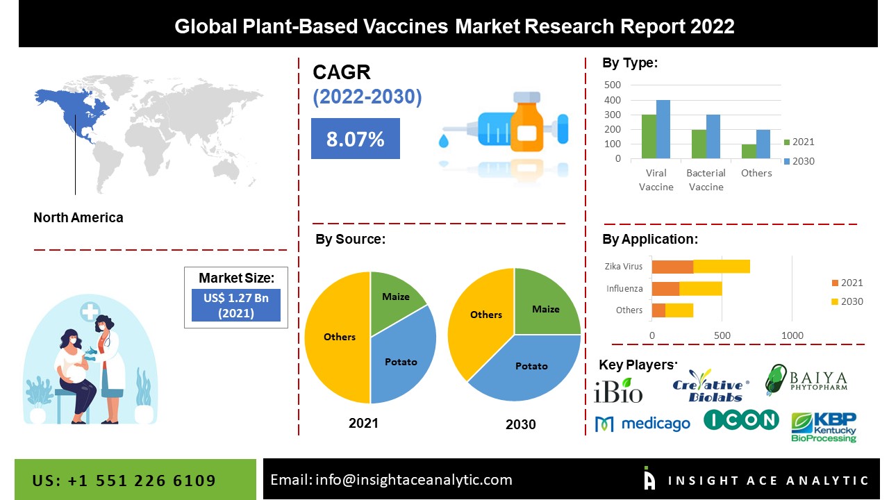 NEW JERSEY, NJ, USA, November 24, 2022 /EINPresswire.com/ -- Insight Analytics Pvt. Ltd. announces the release of a market assessment report on the "Global Plant-Based Vaccines Market (By Type (Viral Vaccines, Bacterial Vaccines And Others), Application (Influenza, Zika Virus, Ebola Virus And Others) And Source (Maize, Tobacco, Potatoes And Others))- Market Outlook and Industry Analysis 2030"