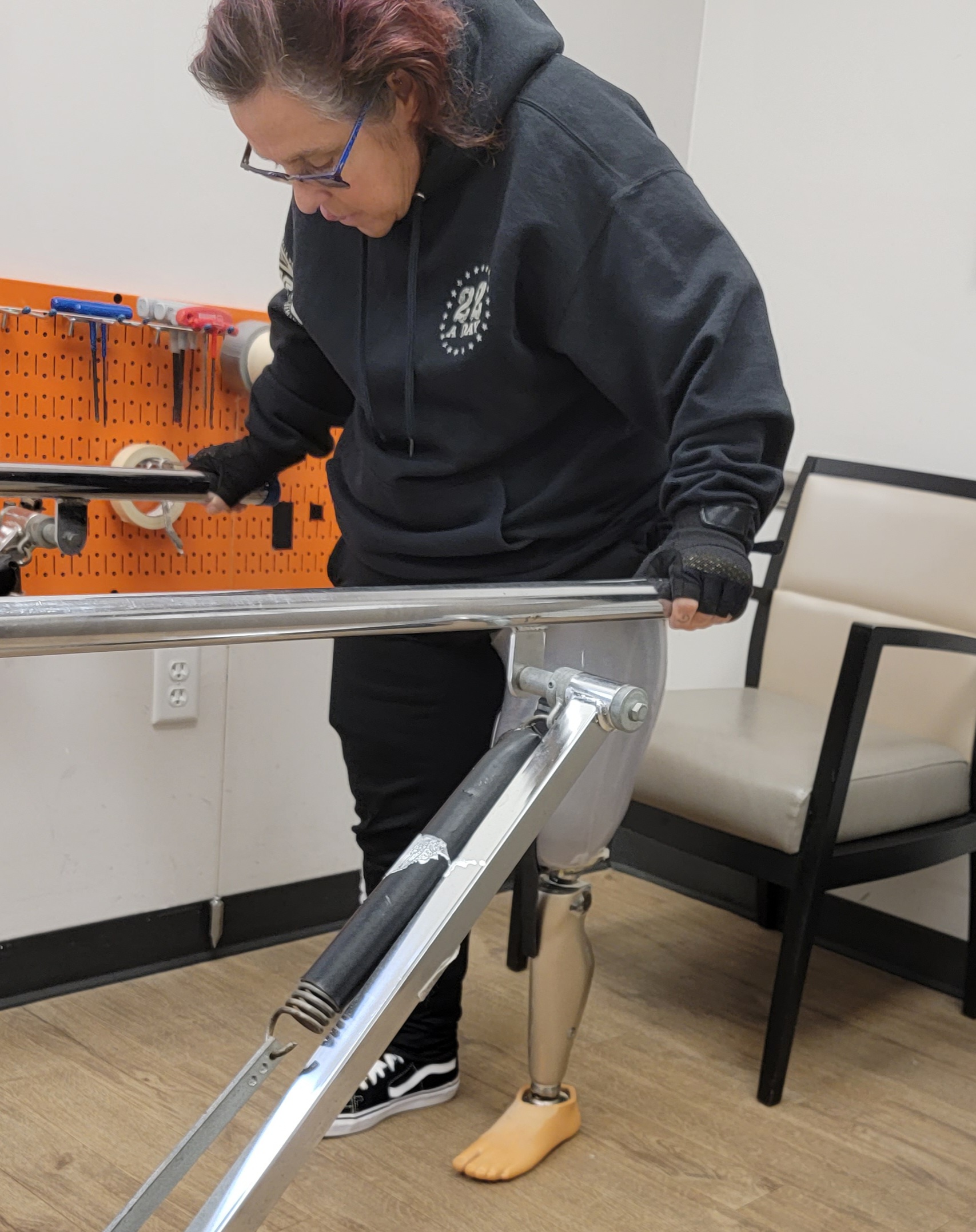 Recovery has included weeks of battling Phantom pain spasms that were horrific. She has been guided to her next steps with “shrinkers” to help prepare her leg stump to fit properly into the prosthetic. Tracey was able to test out a sample at the Hanger Clinic in South Easton and hopes to see her permanent one next week. She has completed home-based physical and occupational therapy efforts.