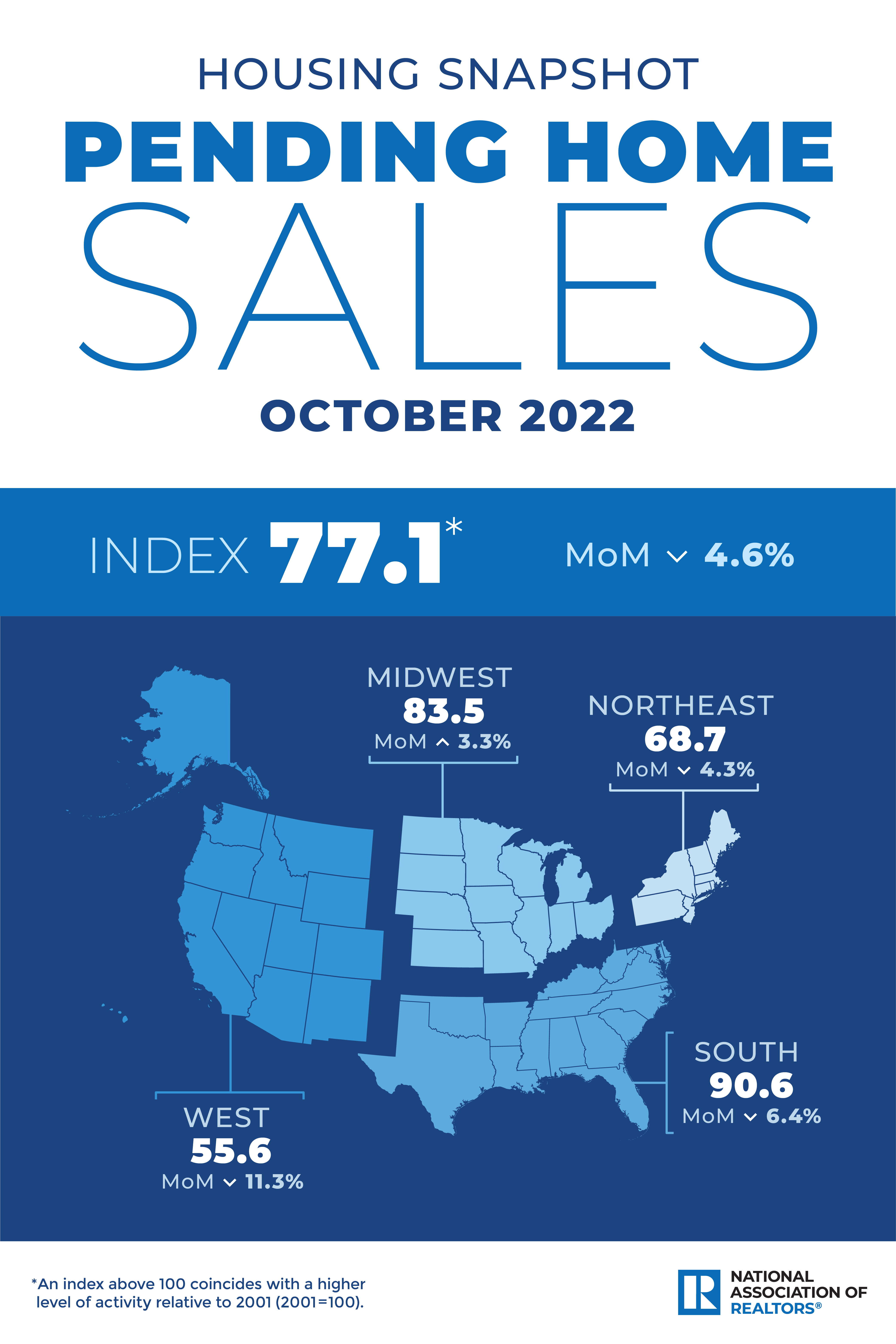 Pending home sales slid for the fifth consecutive month in October, according to the National Association of Realtors®. Three of four U.S. regions recorded month-over-month decreases, and all four regions recorded year-over-year declines in transactions.