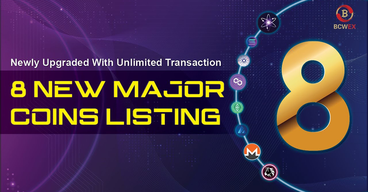 Leading digital asset financing services provider BCWEX expands its roster of trading assets by adding 8 new coins to its listings.