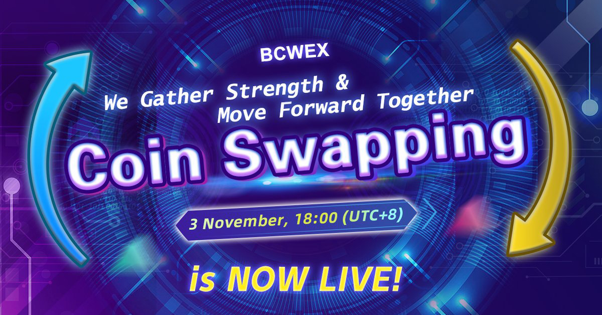 BCWEX is also adding coin swapping functionality to its platform. The 4 new coin pairs are namely BTC→USDT, ETH→USDT, USDT→BTC and USDT→ETH. These coin pairs will receive swapping support on the BCWEX platform beginning 3rd November 2022.