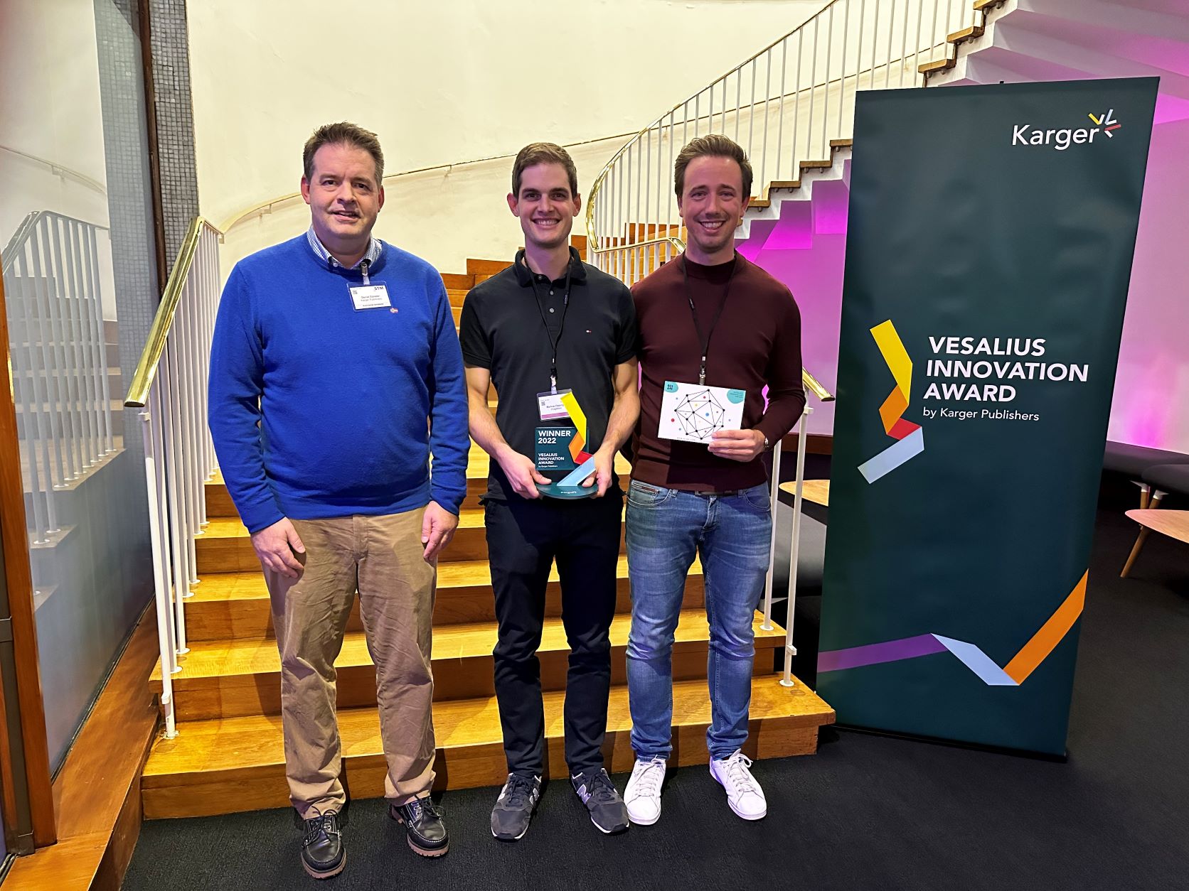 This year marks the third time that Karger Publishers has presented its Vesalius Innovation Award. The award honors internationally active startups that offer innovative solutions for the rapidly changing needs of the Health Sciences ecosystem in the fields of scientific publishing and communication, as well as Open Science. This year, the award was presented in person for the first time during STM Week in London. The following five finalists pitched their innovative ideas to the jury: ›ImageTwin, ›scientifyRESEARCH, ›SciScore, ›alviss.ai, and ›Prophy.