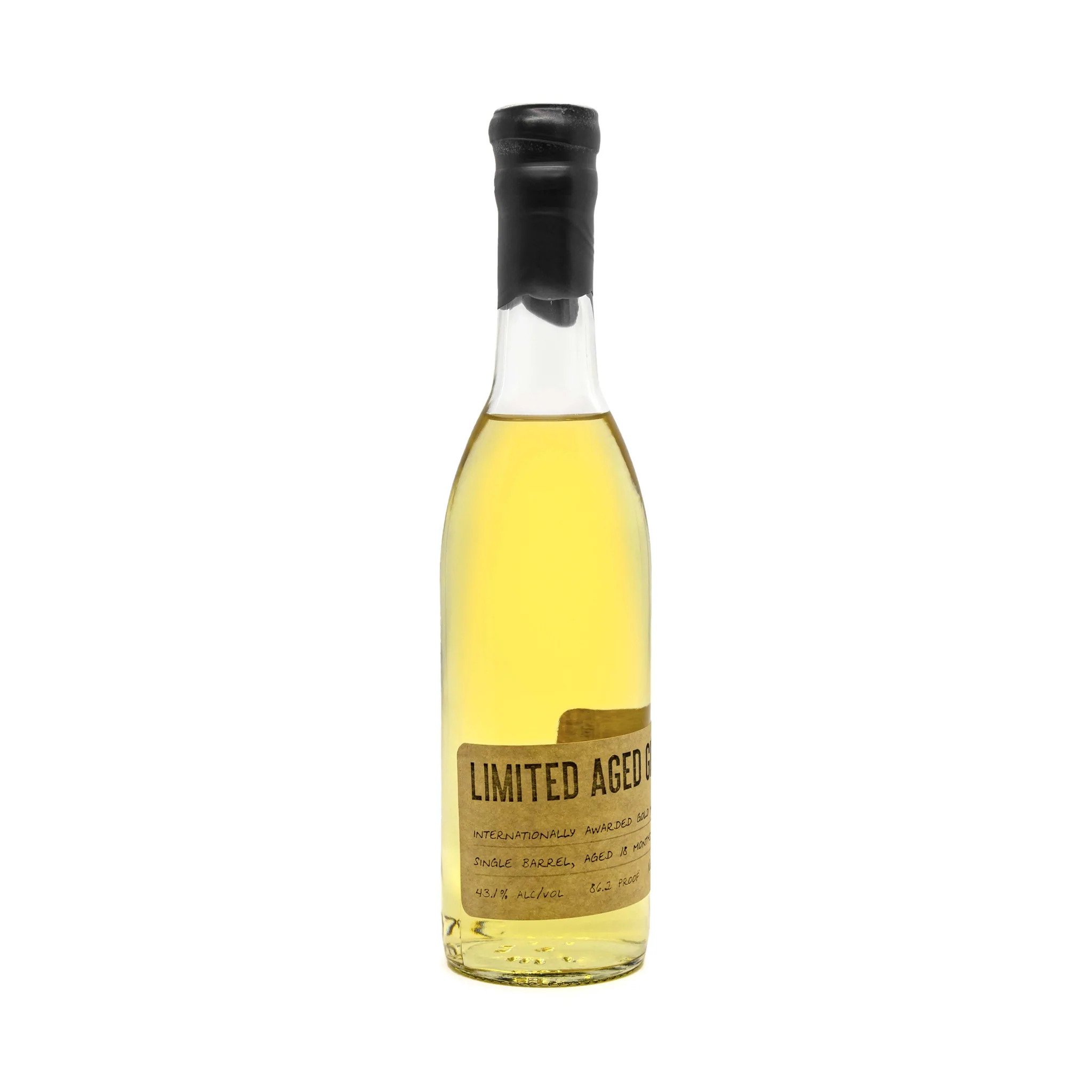 Limited Aged Gin base spirit is a spin-off of the award-winning "Limited Gin", available at the LCBO, aged 18 months in a single dump bourbon barrel, creating an elevated sipping gin. Smooth and balanced aromas of rich botanicals with orange zest and sweet vanilla hint at the finish.