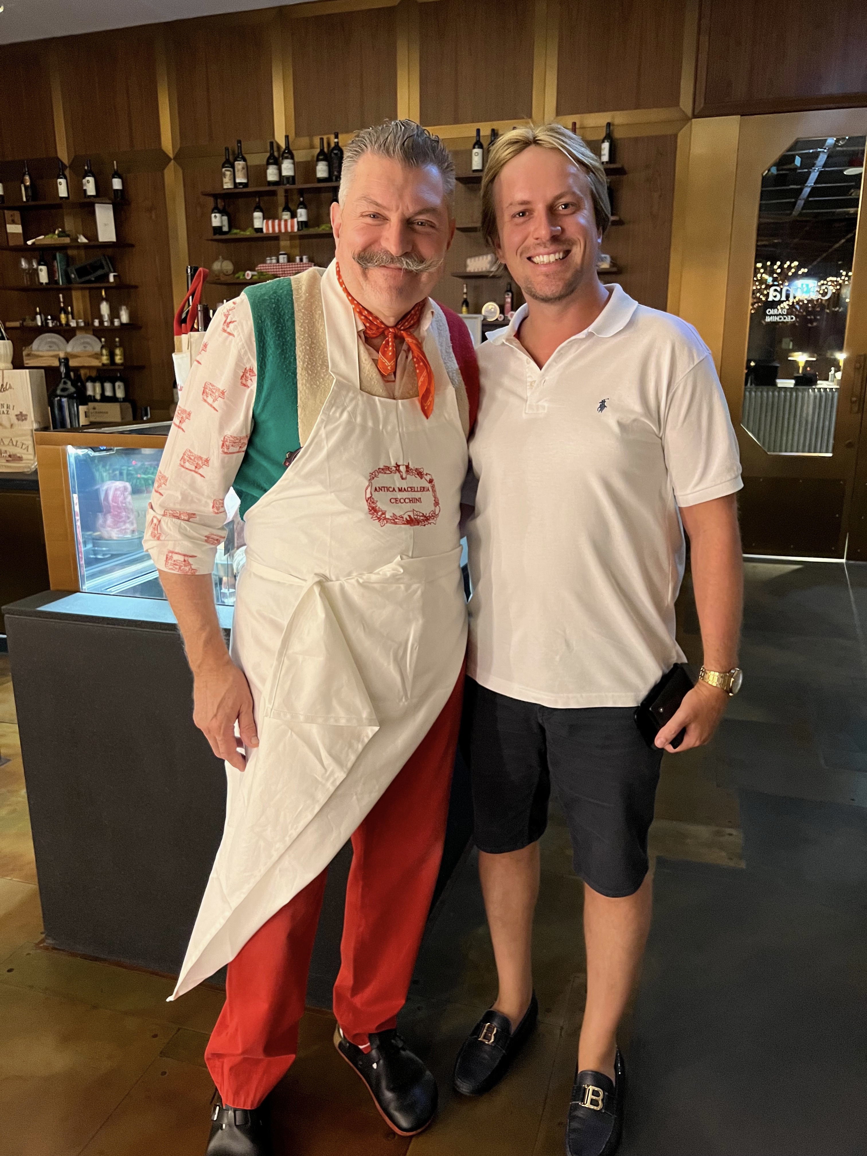 Christopher Aleo at dinner with the ''butcher'' Dario Cecchini, Netflix's star of the grill