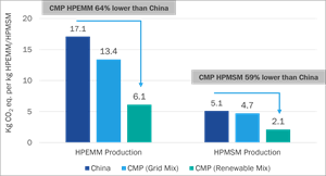 - Scope 3: any other indirect emissions. This study excludes the transport of reagents for comparative purposes; as such, Scope 3 and total GWP figures for the CMP are slightly lower in this study than those detailed in the LCA Study conducted earlier this year.