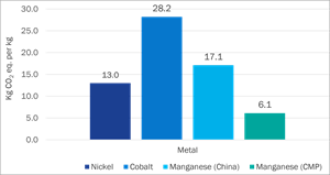 Sources: Nickel Institute Life Cycle Assessment Report in 2020 and Cobalt Institute Life Cycle Assessment Report in 2022.