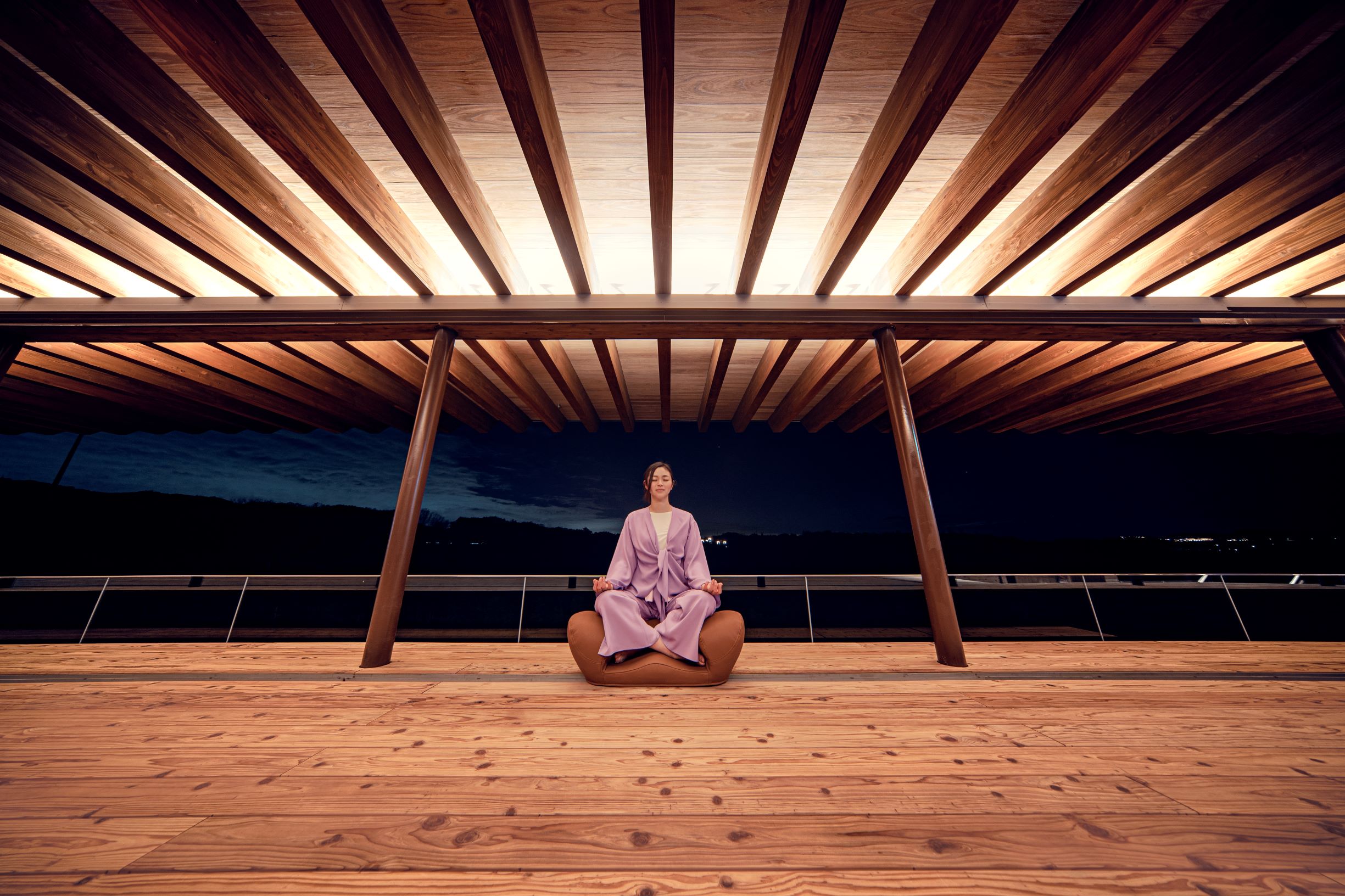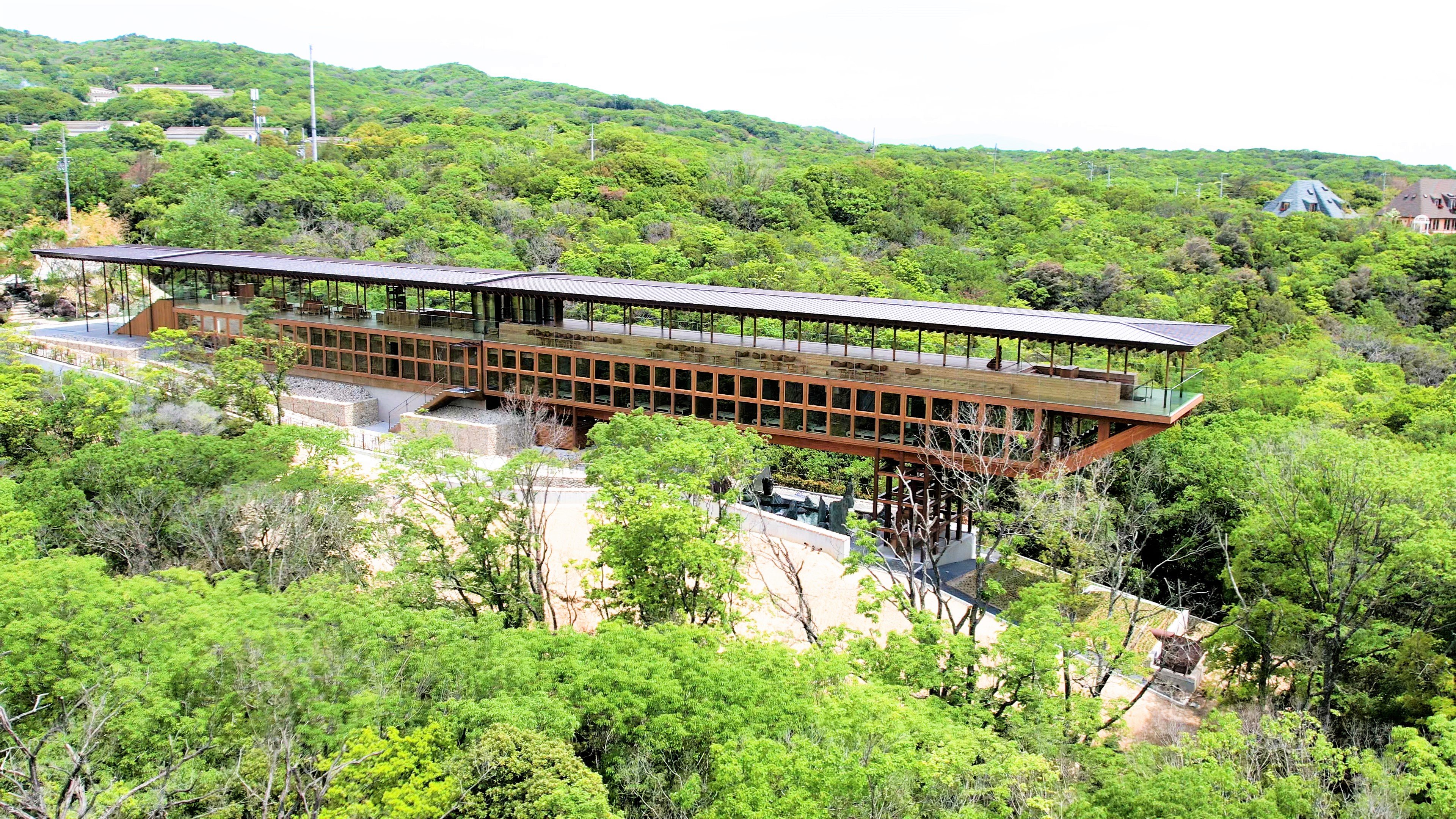 Zenbo Seinei is located in a tranquil environment in northern Awaji, surrounded by mountains on all sides and positioned on the 135th meridian of east longitude that extends through Japan. The building was designed by Shigeru Ban, an architect who won the Pritzker Architecture Prize (2014), one of the most prestigious awards in the architecture industry, and features a 100-meter-long wooden deck where guests can experience Zen meditation in the open-air with a 360-degree panoramic view, away from the hustle and bustle of the city.