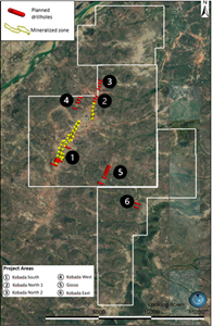 A comprehensive drill program has been designed to target all known anomalies on the Kobada Gold Project. The program will be revised according to the results from the current drill program.
