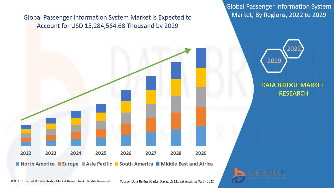 SAN DIEGO, CALIFORNIA, UNITED STATES, December 14, 2022 /EINPresswire.com/ -- Data Bridge Market Research completed a qualitative study titled "Passenger Information System Market" with 100+ market data tables, pie charts, graphs, and figures spread across Pages and an easy-to-grasp full analysis. Passenger Information System is a professional and detailed report focusing on primary and secondary drivers, market share, leading segments, and geographical analysis. This analysis provides an examination of various market segments that are relied upon to observe the fastest development amid the estimated forecast frame. The Passenger Information System report encompasses market definition, currency and pricing, market segmentation, market overview, premium insights, key insights, and company profile of the key market players. The Passenger Information System market report also helps to know about the types of consumers, their response and views about particular products, and their thoughts on the step-up of a product.Data Bridge Market Research analyses that the Global Passenger Information System Market is growing with a CAGR of 8.7% in the forecast period of 2022 to 2029 and is expected to reach USD 15,284,564.68 thousand by 2029. Rising demand for intelligent public transportation system is boosting the market.