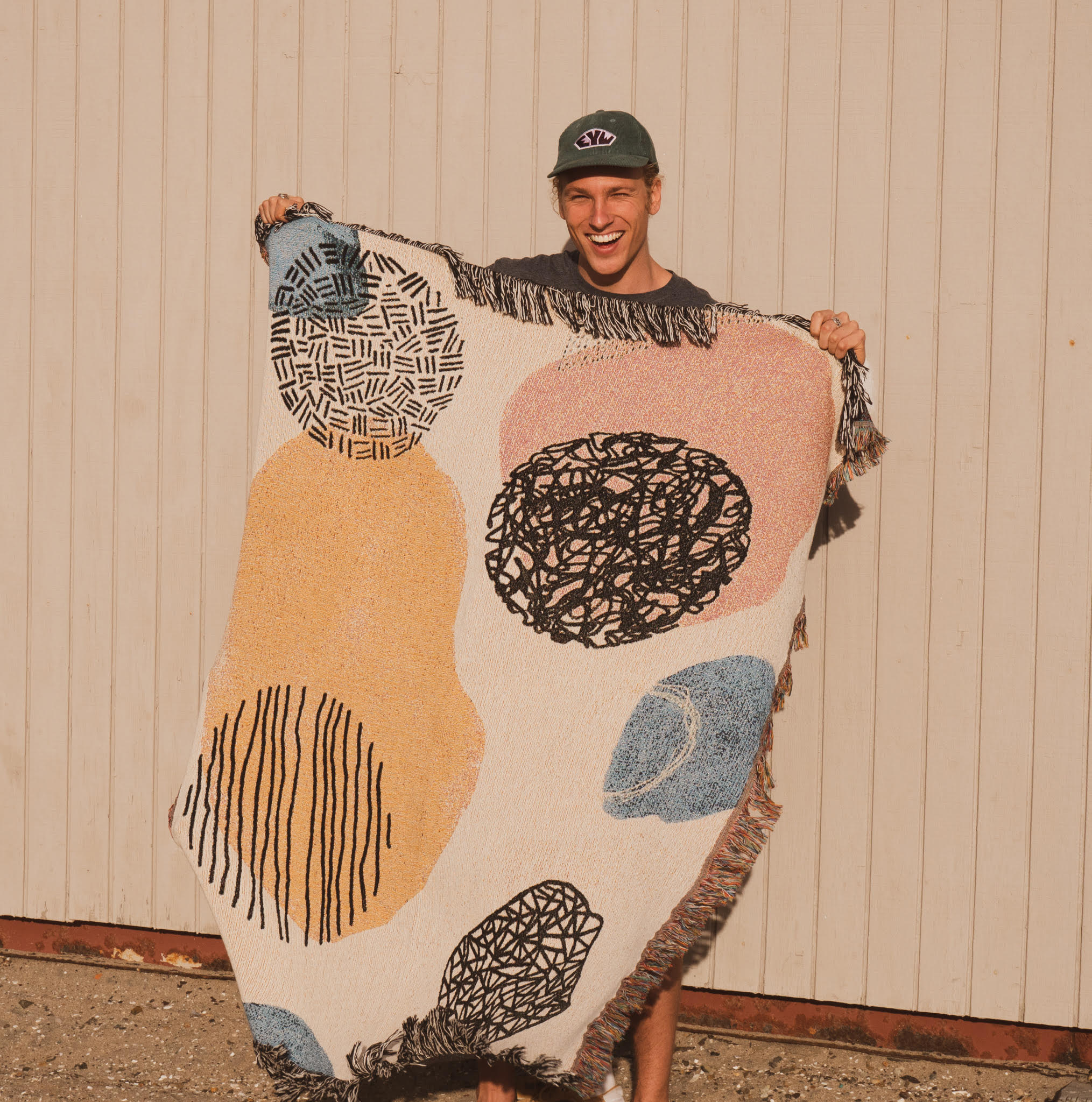 My website features my original abstract art canvases & handmade ceramic pieces, my best-selling jacquard woven throw blankets, made with 100% cotton, which feature a curated collection of 12 different patterns, each one entirely reversible with a different color scheme on the front and back! I’ve most recently expanded into now offering variations of some of the best-selling patterns into woven pillows and tote bags. I really feel that the variety of styles and patterns allows for a blanket design for every occasion and every person.