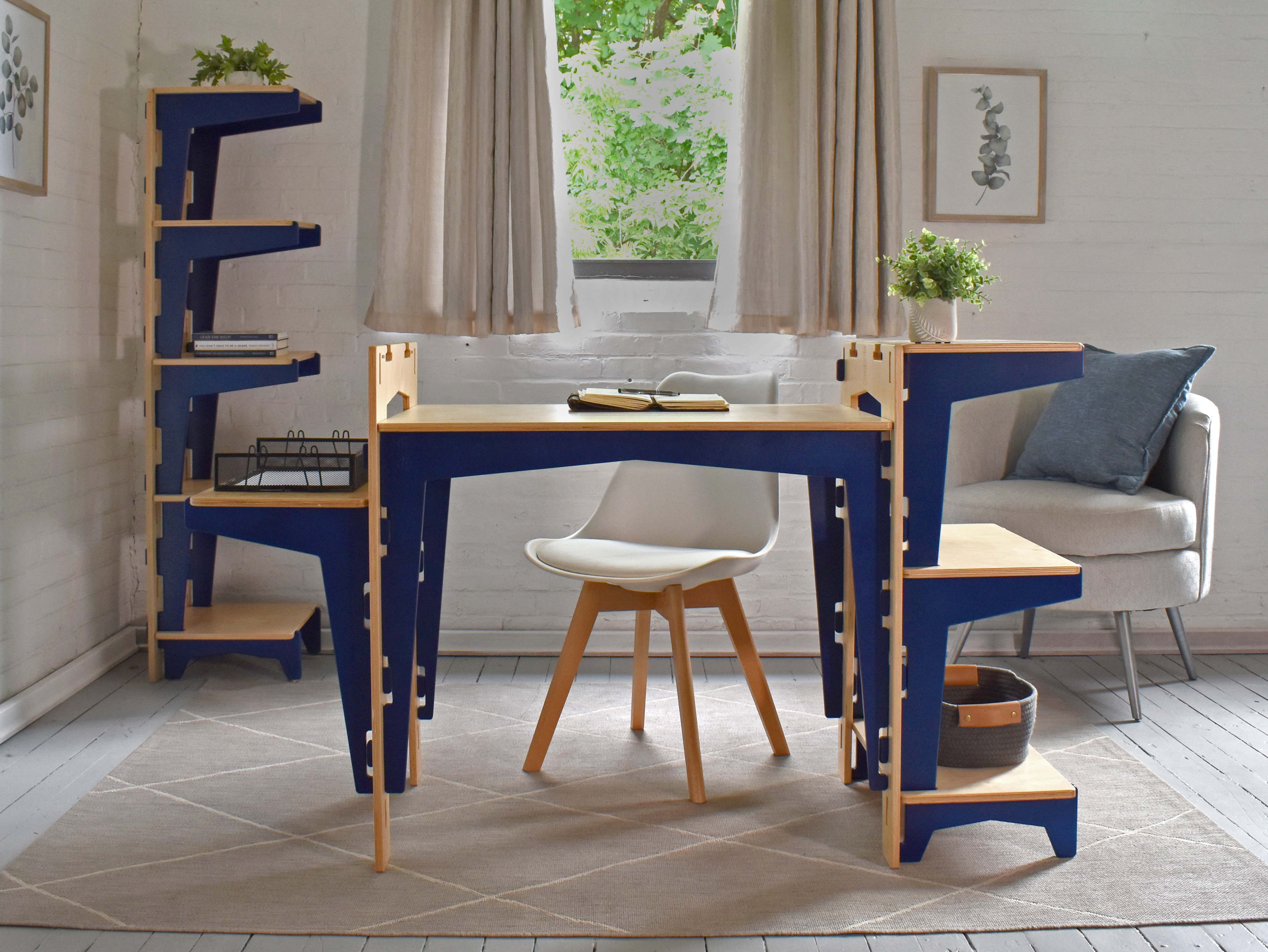 Form, function & a bold splash of color in this adaptable, sustainable work from home desk. Space saving design includes adjustable height top & accessories with ample storage. Small space approved!