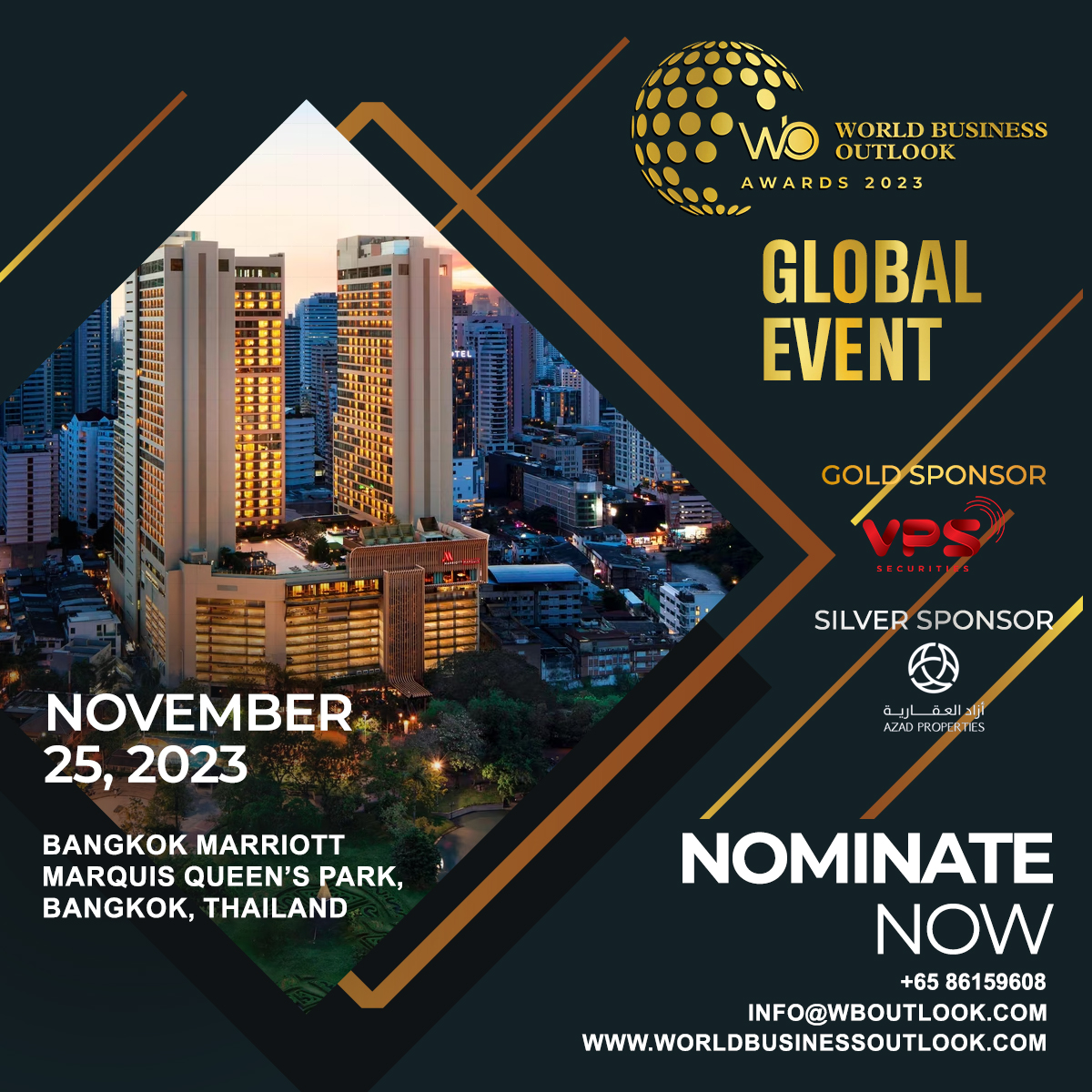 SINGAPORE, July 19, 2023/EINPresswire.com/ -- World Business Outlook proudly announces its biggest Annual event of the year, World Business Outlook Awards 2023. The Singapore-based media company is going to conduct its 3rd edition of the awards ceremony, physically, at Bangkok Marriott Marquis Queen’s Park in Thailand on November 25. Being one of the fastest growing global business news portal, World Business Outlook Awards 2023 expects attendance from Global Top CXOs of some of the biggest corporate houses, influential business personalities from across the world, inspirational world-class entrepreneurs, leading market disruptors and some of the most powerful bureaucrats from the APAC regions. World Business Outlook invites one and all for its Global Event on November 25 at Bangkok, Thailand.