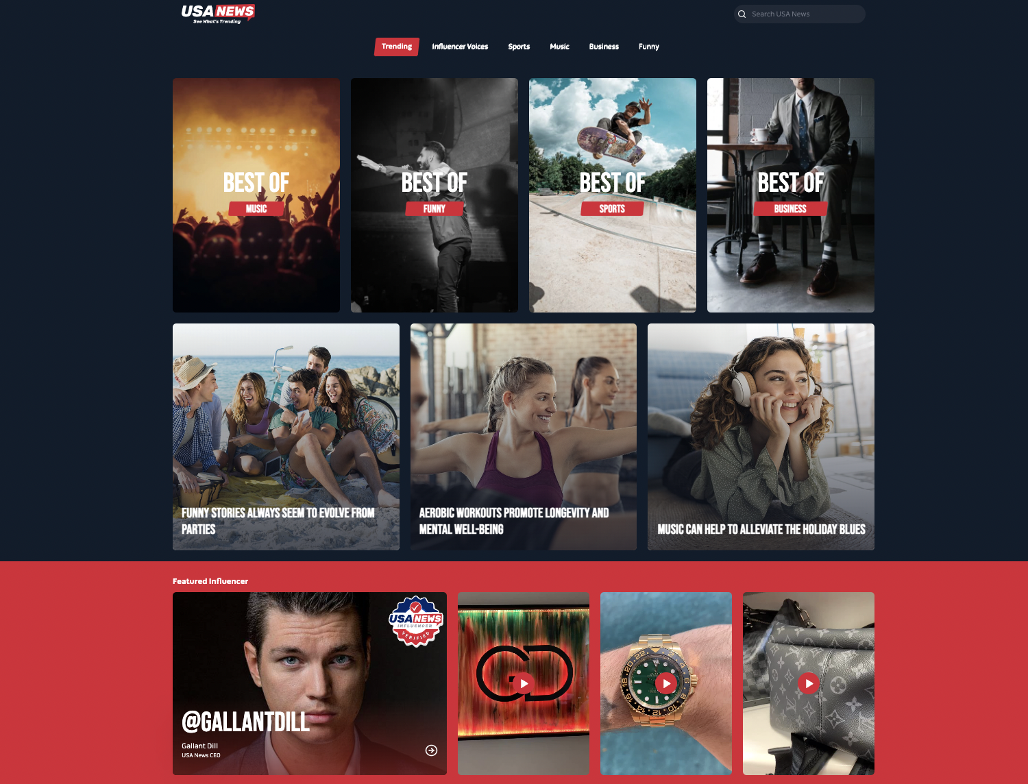 Outside of having categories like Music, Business and Sports, USA News is allowing influencers to showcase their work on it's Influencer Category Page by giving each influencer a profile.