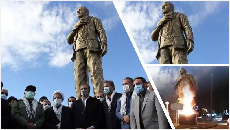 On January 5, 2022, the MEK’s activists torched the large and newly built statue of Qassem Soleimani in Shahr-ekord at 9:30 pm local time. Simultaneously, they burned large banners with his pictures across the country.