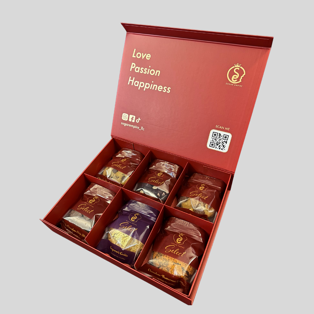 CALIFORNIA, UNITED STATES, January 5, 2023 /EINPresswire.com/ -- California cookie company Sugar Empire is thrilled to announce its launch with six delicious flavors of cookies, including one topped with shredded 24k genuine edible gold leaves.Sugar Empire’s newest product, the Sugar Empire Select, has all six flavors presented in opulent packaging. The Sugar Empire Select was supposed to be a limited product for the holidays, but due to high demand, it sold out two weeks prior to the release date and it is now available year-round.