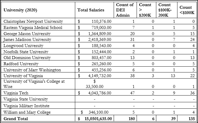 Money devoted to DEI salaries alone in 2021 could have funded more than 1,100 full-tuition scholarships for Virginia students in financial need, the study said.