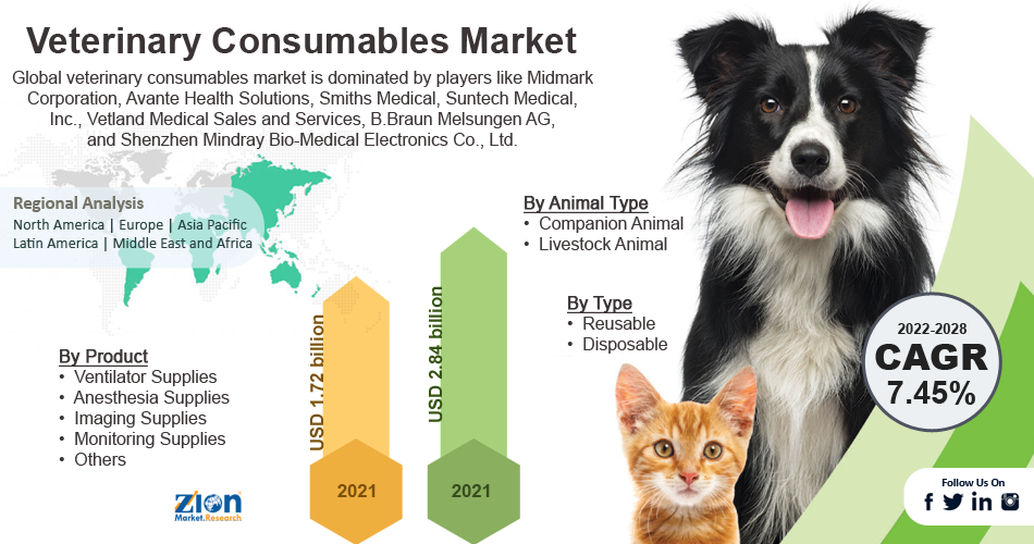 This review is based on a report by Zion Market Research, titled “Global Veterinary Consumables Market By Animal Type (Companion Animal, And Livestock Animal), By Product (Ventilator Supplies, Anesthesia Supplies, Imaging Supplies, Monitoring Supplies, And Others), By Type (Reusable, And Disposable), And By Region - Global And Regional Industry Overview, Market Intelligence, Comprehensive Analysis, Historical Data, And Forecasts 2022 – 2028.”- Report at https://www.zionmarketresearch.com/report/global-veterinary-consumables-market