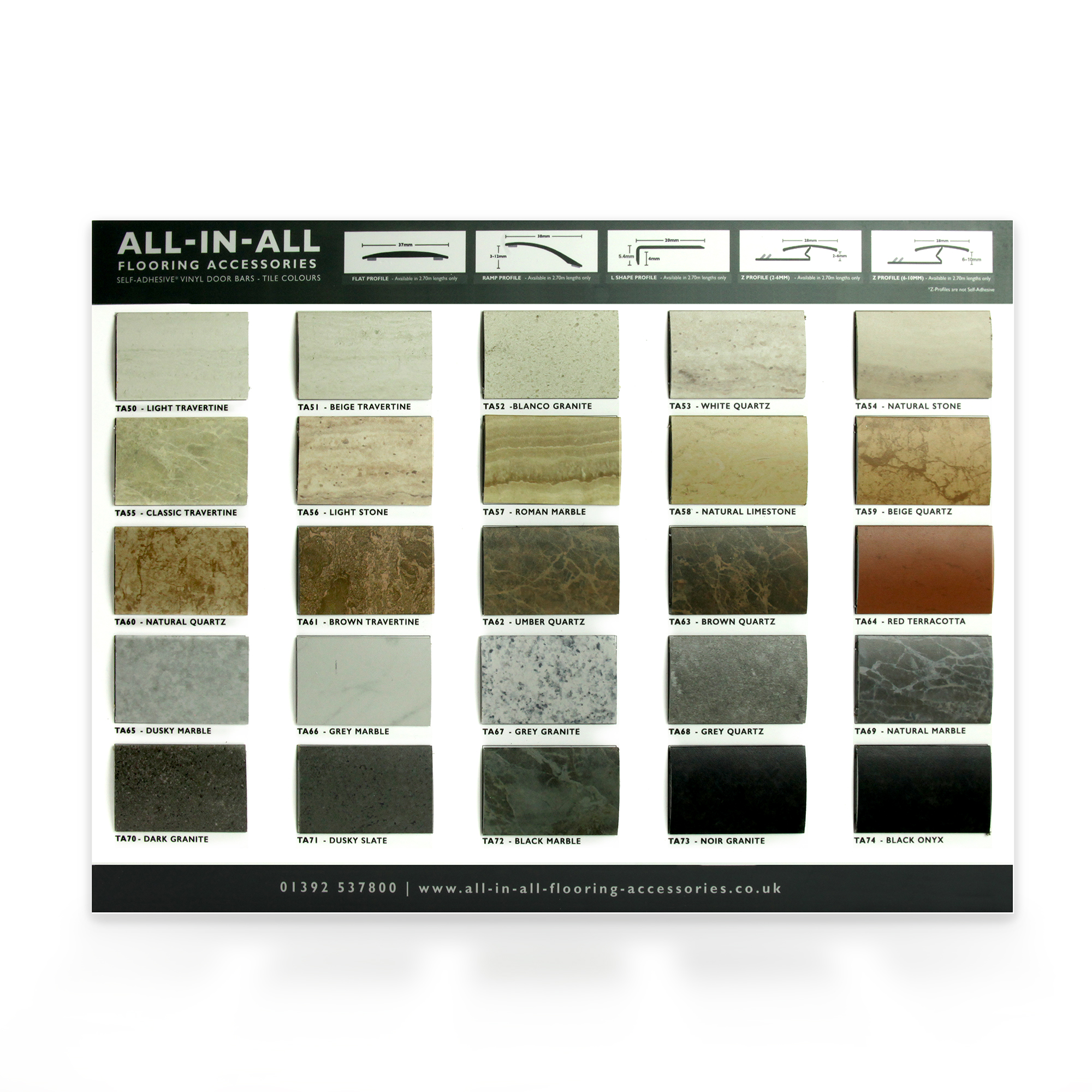 BRIXHAM, ENGLAND, UNITED KINGDOM, January 10, 2023 /EINPresswire.com/ -- All-in-All Flooring Accessories stocks the largest collection of accessories and ancillaries in the UK. Established over 30 years ago by industry experts, the brand is continually developing and adding to the range stocked and provides a comprehensive offering backed up by excellent customer service.The latest edition is a collection of newly launched self-adhesive doorbars with a tile decor finish, available in stone, ceramic and vinyl designs in 25 different colours.