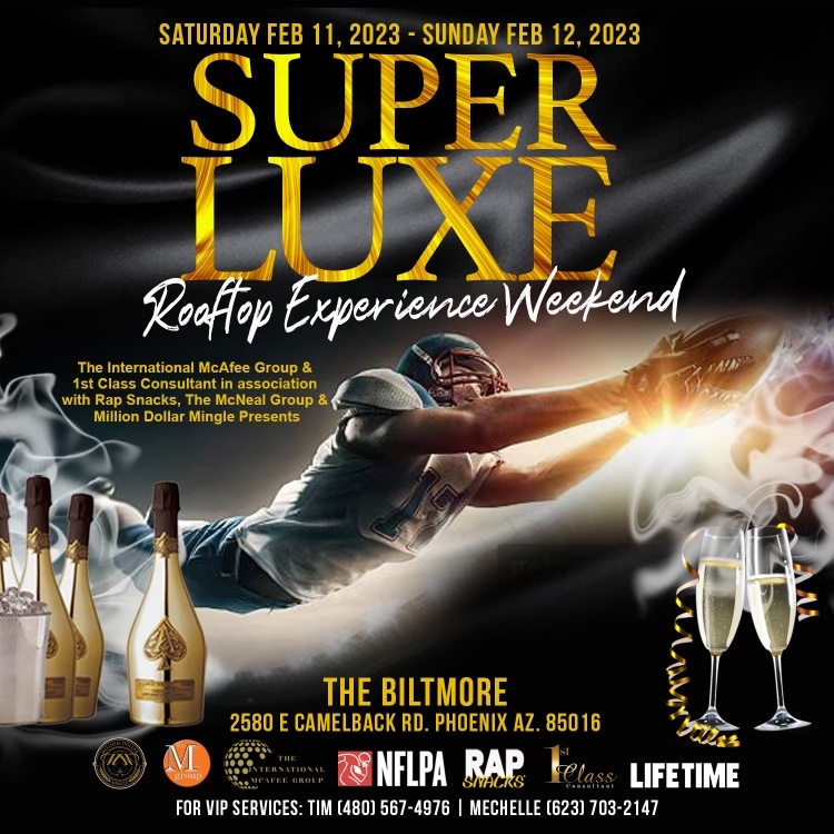 The primary objective of the SUPER LUXE ROOFTOP EXPERIENCE is to bring influential individuals from sports, entertainment, and business worlds together to provide financial support and recognition to local charities. The charities honored will include Mechelle Cares Foundation, The Vantasy Project, Million Dollar Mingle Charities, NFLPA, Rise and Dream Foundation, and Phoenix Children’s Hospital.