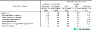 CHICAGO, Jan. 11, 2023 (GLOBE NEWSWIRE) -- Numerator, a data and technology company serving the market research space, has released its monthly Numerator Inflation Report, an advance projection of the U.S. Bureau of Labor Statistics’ monthly Consumer Price Index (CPI). The report measures inflation for food at home overall and its subcomponents including cereals and bakery products; meats, poultry, fish, and eggs; dairy and related products; fruits and vegetables; nonalcoholic beverages and beverage materials; and other food at home.
