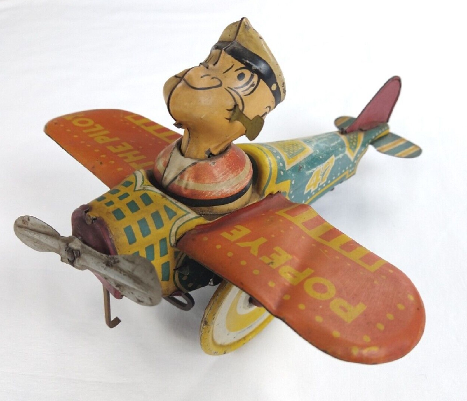 Rare and highly collectible circa 1930 Popeye the Pilot tin wind-up toy plane made by Marx (est.$1,000-$1,500).