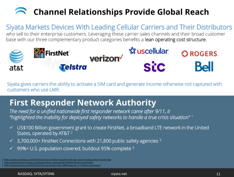 $SYTA is a B2B global vendor of next generation Push-To-Talk over Cellular devices and cellular booster systems.