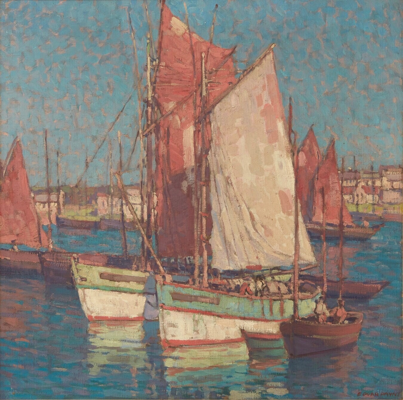 Oil on canvas painting by Edgar Alwin Payne (American, 1883-1947), titled Fishermen's Harbor, Concarneau, France ($81,250).