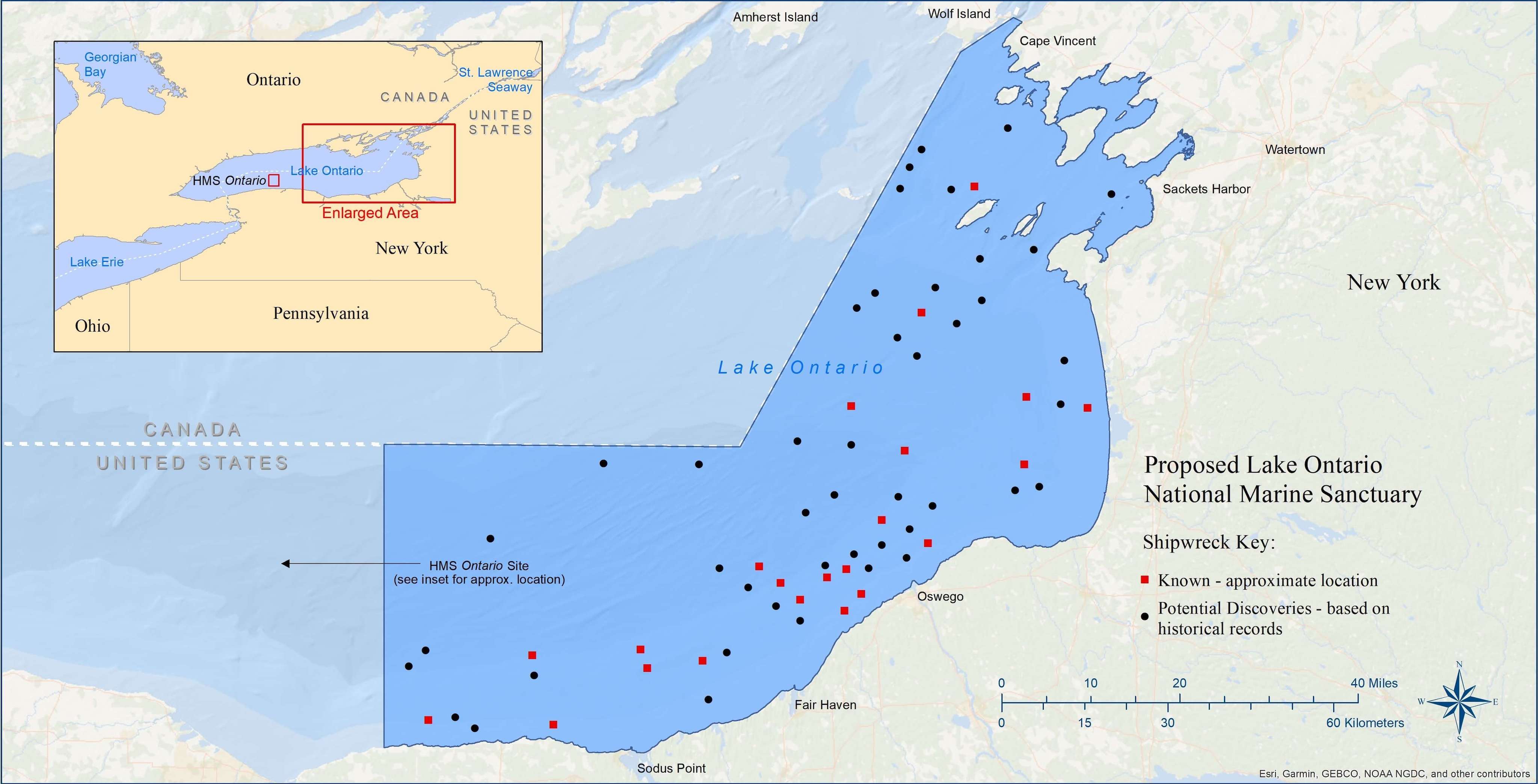 NOAA is proposing a sanctuary in a 1,724 square mile area in eastern Lake Ontario in the state of New York that would protect 43 known shipwrecks and one aircraft representing events spanning more than 200 years of the nation’s history.