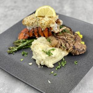 “We will kick off the night by shaking up vibrant Valentine Spritz Cocktails,” Therese says. “Then, we will move to the main event, creating perfectly seared Ribeye Steak and stunning Imperial Crab Stuffed Lobster Tail! Valentine's Day is not complete without a touch of chocolate, so we will send you a decadent chocolate surprise to enjoy for dessert, created by myself. We can't wait to see you for this fabulous date night experience.”