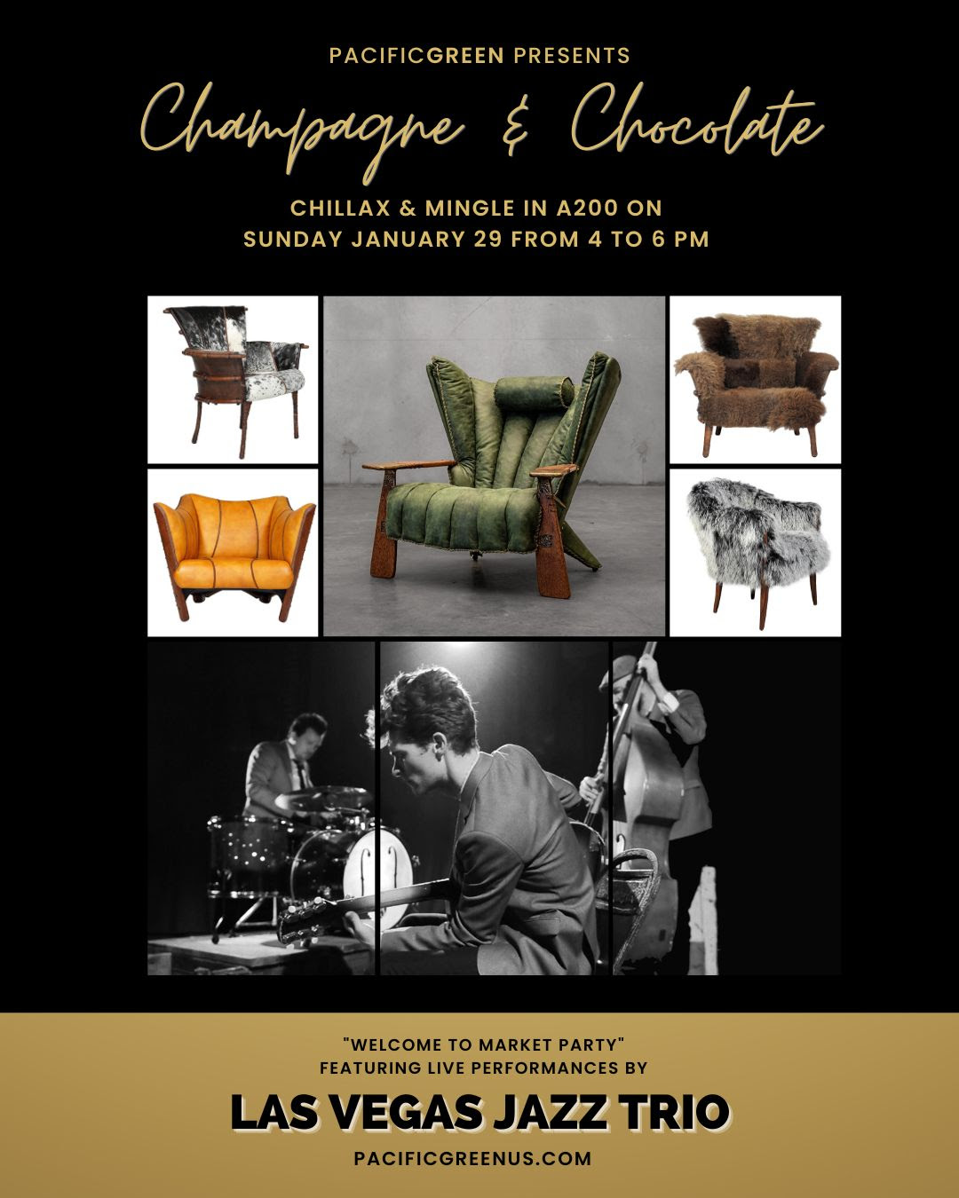 Pacific Green is thrilled to host their first welcome party event Sunday, Jan 29th at 4pm, featuring live music by The Last Vegas Jazz Trio. Guests will discover their exotic collection while listen to live jazz while sipping on champagne.