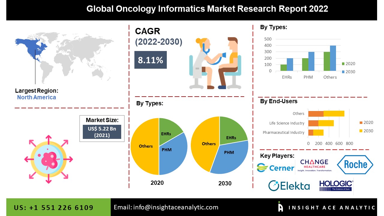 JERSEY, NJ, US, February 1, 2023 /EINPresswire.com/ -- According to the latest research by InsightAce Analytic, the global Oncology Informatics market is valued at US$ 5.22 Billion in 2021, and it is expected to reach US$ 10.16 Billion by 2030, with a CAGR of 8.11% during a forecast period of 2022-2030.