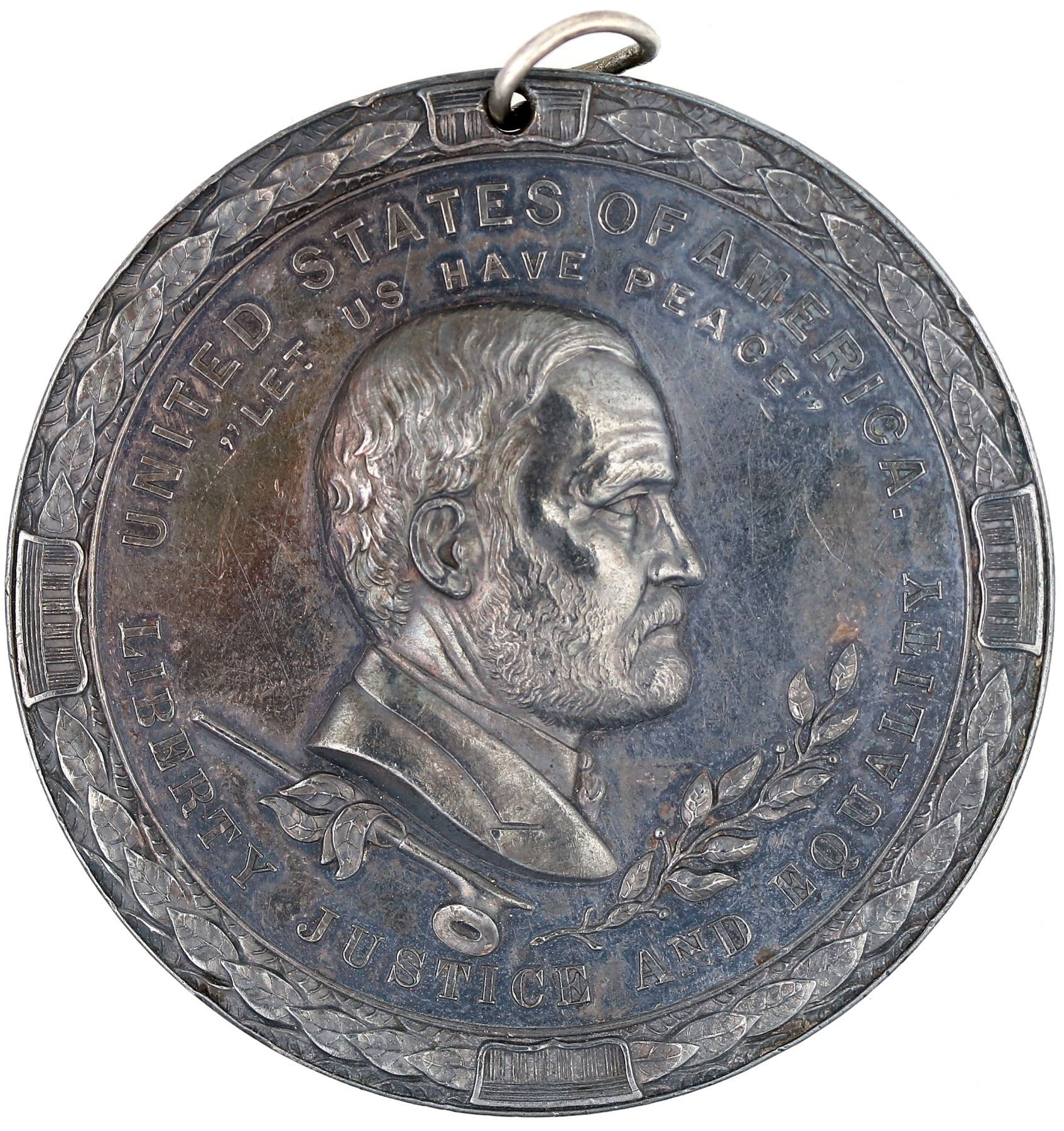 1871 silver U.S. Peace Medal, depicting Ulysses S. Grant on the obverse and the saying “One Earth Peace, Good Will Toward Men” on the reverse, almost uncirculated ($4,500).