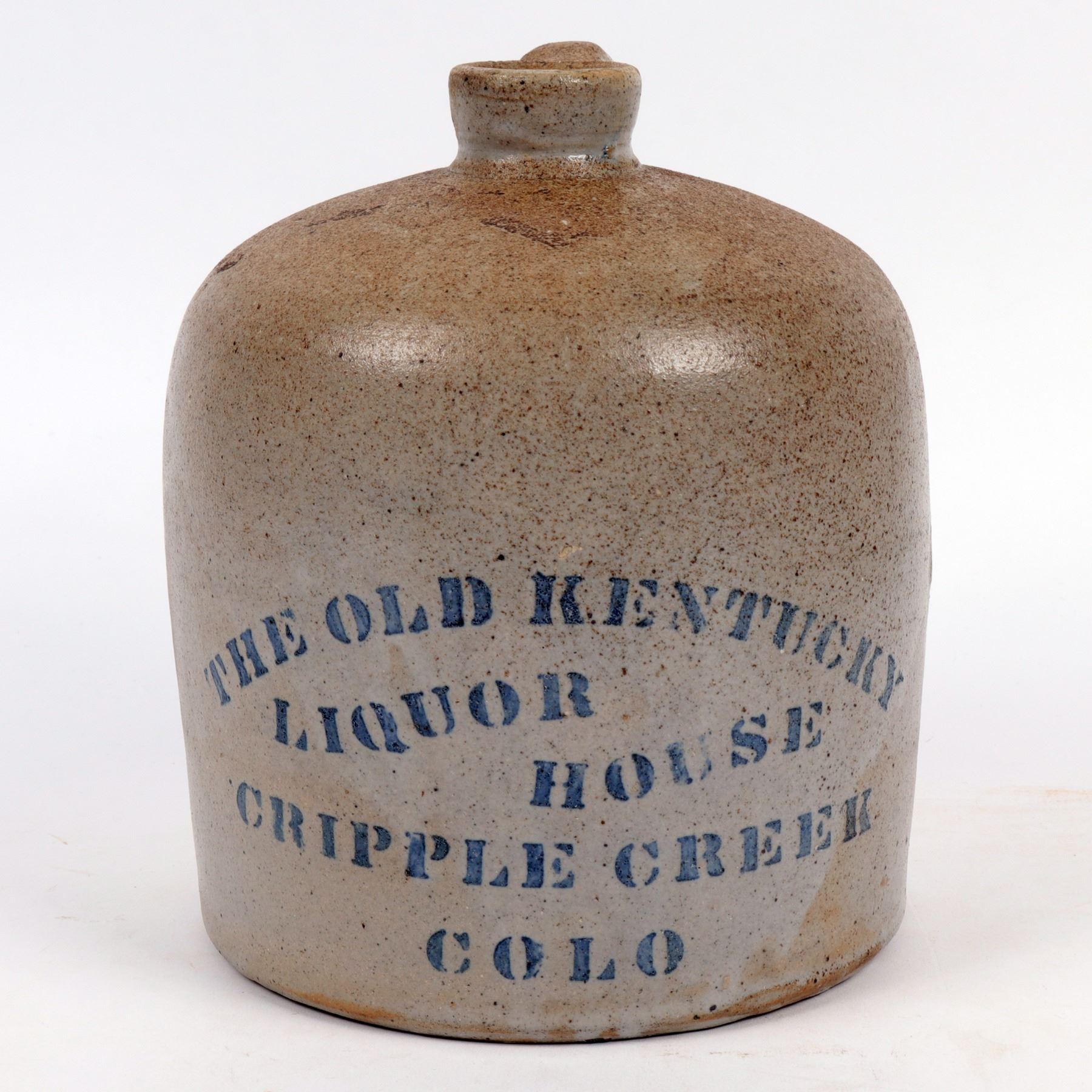 The Dr. Boerhaave’s Stomach Bitters bottle was Day 2’s top achiever. Also sold was a tan-colored jug for the “Bountiful Co-Operative / Mercantile Institution / Bountiful, Utah”, 11 inches tall, with five base chips but no apparent cracks ($3,625); and a near-mint, unlisted variant of a Preble (J 32) Old Kentucky Liquor House (Cripple Creek, Colo.) slope shoulder jug, 7 ½ inches tall and very scarce, with a brown glaze on the top and a lighter glaze on the bottom ($3,500).