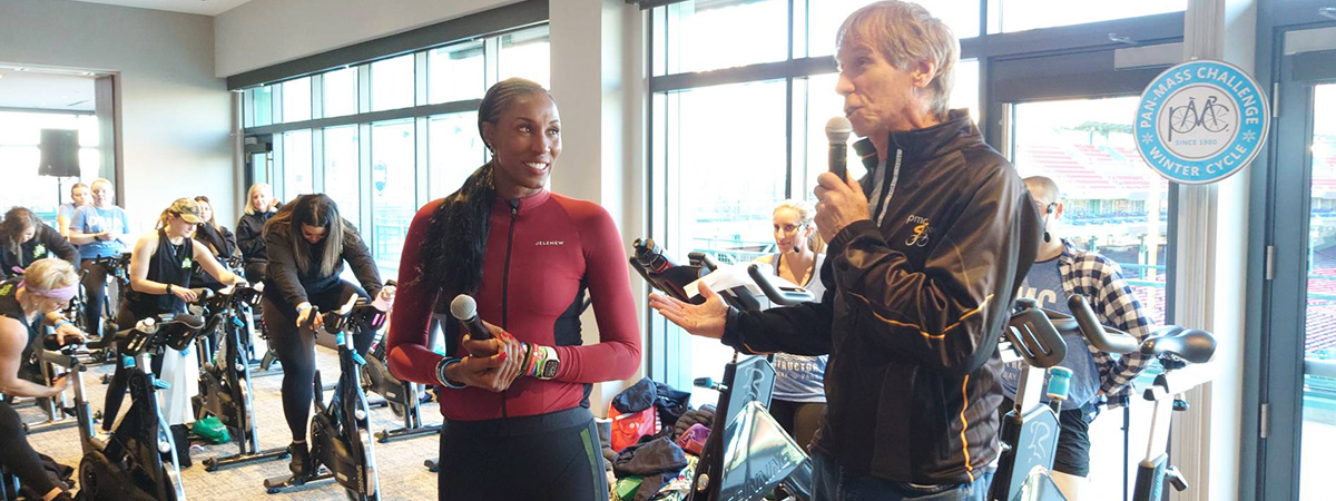 She jokingly said during her interaction with PMC Founder and Executive Director Billy Starr, "I get excited just thinking about coming here. Although I'm not as good at cycling as I am at basketball, today, I'll be the best rider." Lisa Leslie's humor was met with applause from the audience.