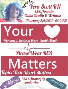 Holistic Health Advocate Vera Scott Raises Awareness of Heart Health Month February 9th, 2023, in Santa Ana, CA
