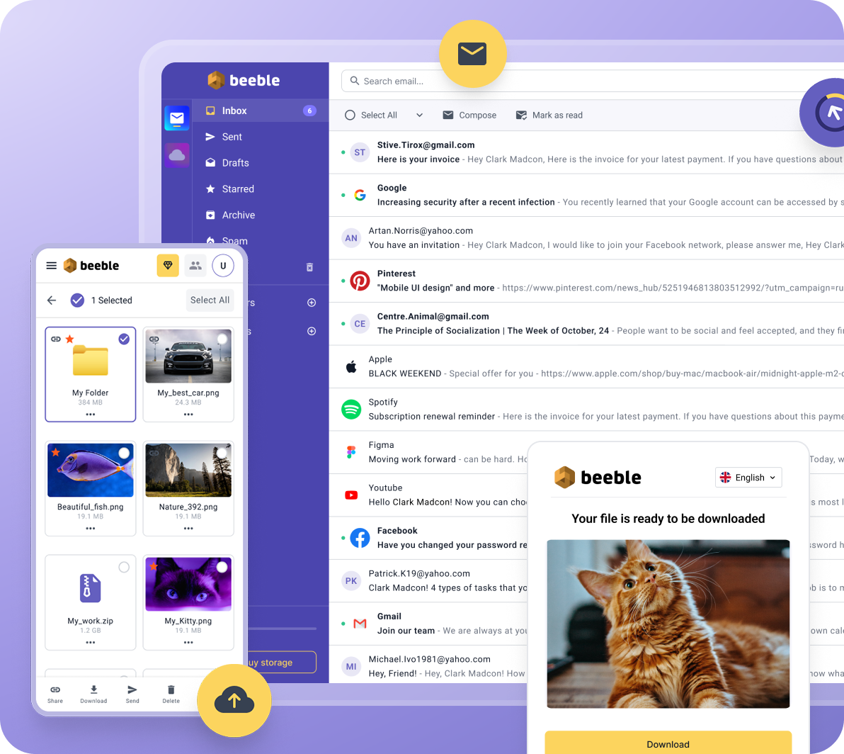 Beeble-encrypted letters and files can also be sent to recipients who use traditional email. Thus, the compatibility and security of communication with any person is maintained.