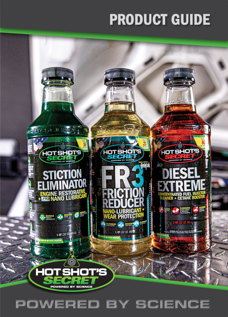 Hot Shot’s Secret Brand Manager, Josh Steinmetz, says, “This is our largest and most complete guide to date. We’ve greatly expanded our product line beyond our well-known diesel products with over 50 products designed to improve fuel economy, power and performance. Each page will clearly indicate how the product alone or in combination with another treatment can correct problematic symptoms. Whether your vehicle is a daily driver, race car, used strictly off-road, or an 80,000 lb. fully loaded semi, our products will help your vehicle run better, longer. And if you still are unsure of what to use from our guide, we have a great customer service department ready to help.”
