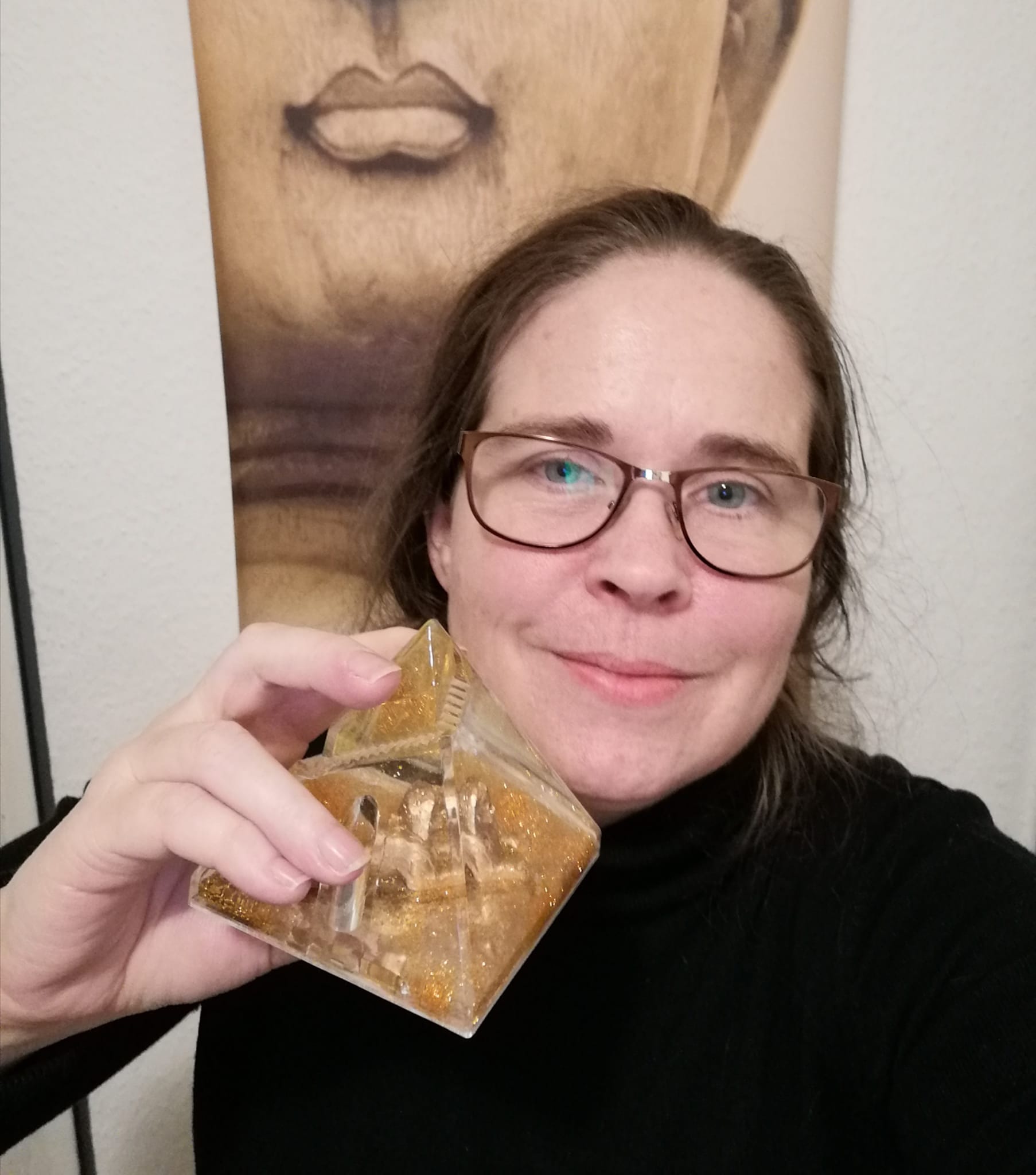 She acquired the golden pyramid from one of the mooring men during a trip through the Suez Canal and it still reminds her of this wonderful time that took her from Europe to Asia, Australia and New Zealand. It is the positive memories from the past that give us courage to go new ways and finally the golden pyramid led to a wonderful contribution during the 13th International Speaker Slam where a new world record was set.