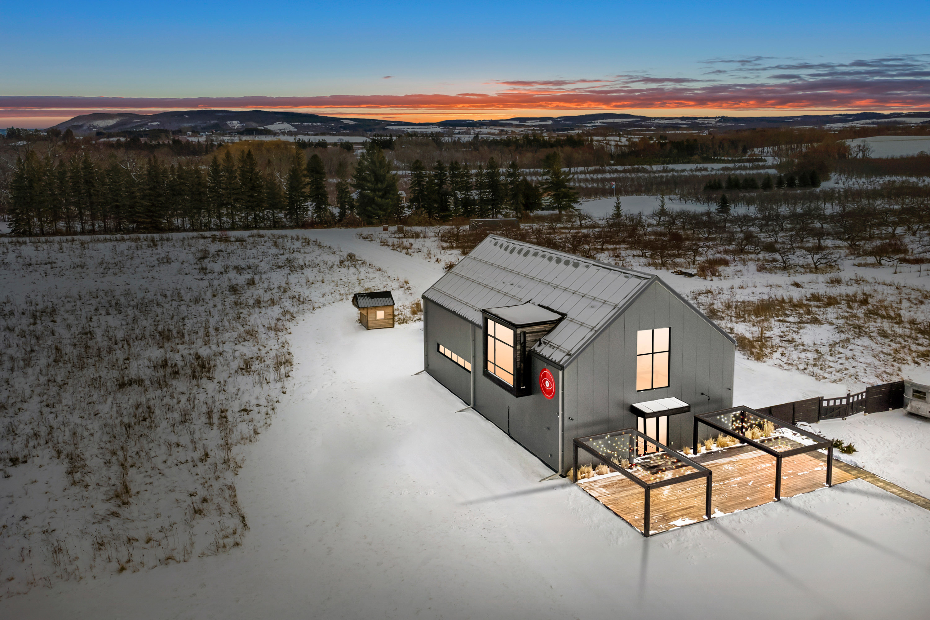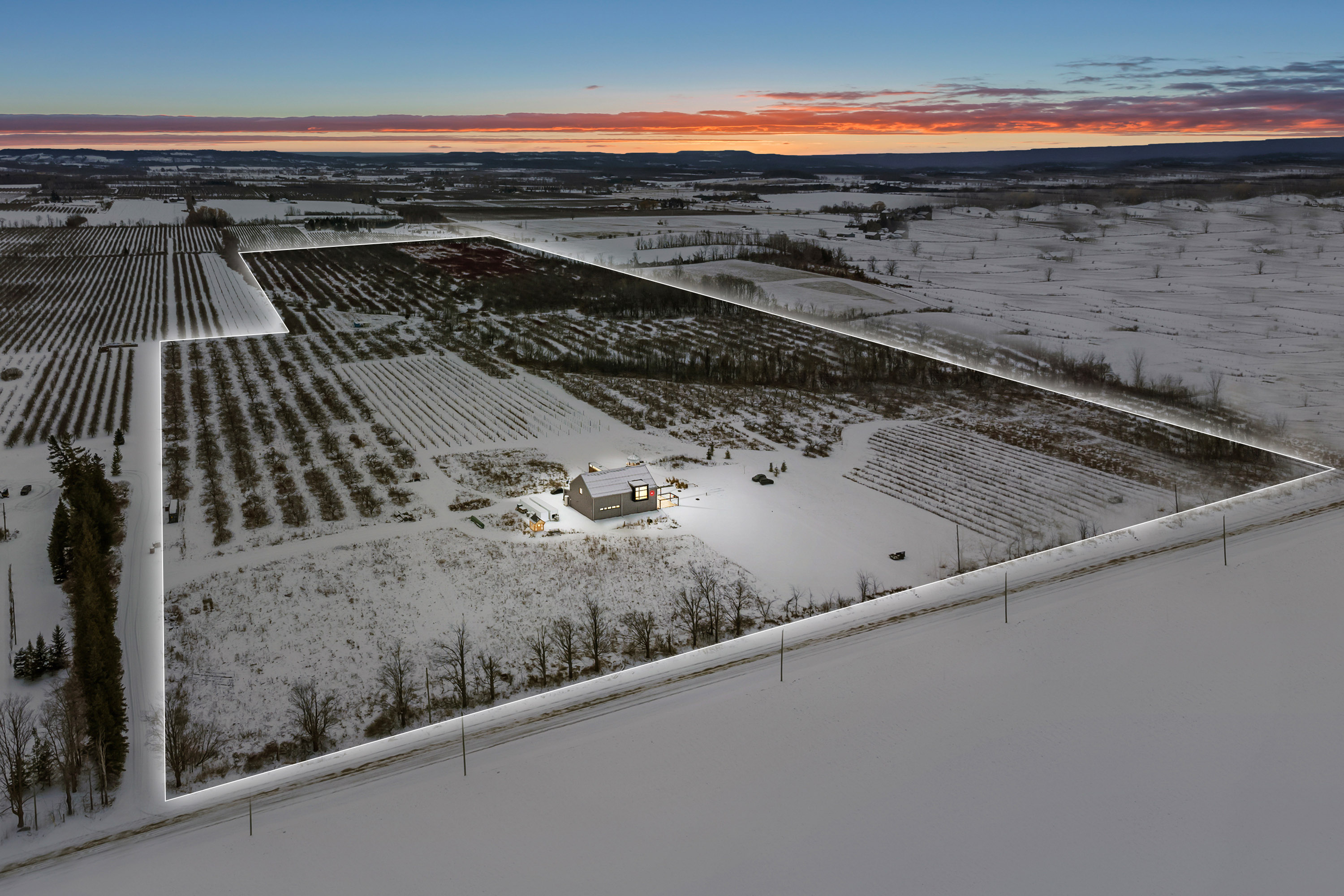 Immersed in the The Blue Mountains of Clarksburg, Ontario, the structure and 80± acres, located at 808108 24th Sideroad, offer limitless possibilities. Across nearly 3,000 square feet, there are state-of-the-art production facilities, a top-of-the-line Geothermal Heating and cooling system and fire suppression system, and a two-story consumer-facing retail shop and tasting room. The two spaces invite guests into the art of producing cider, spirits, and more, while the four-season patio offers sweeping views of the vineyards, including seven acres of newly planted European cider varietals—all just 15 minutes from the Blue Mountain Resort for a short drive to enjoy apres-ski sips in front of a fire.
